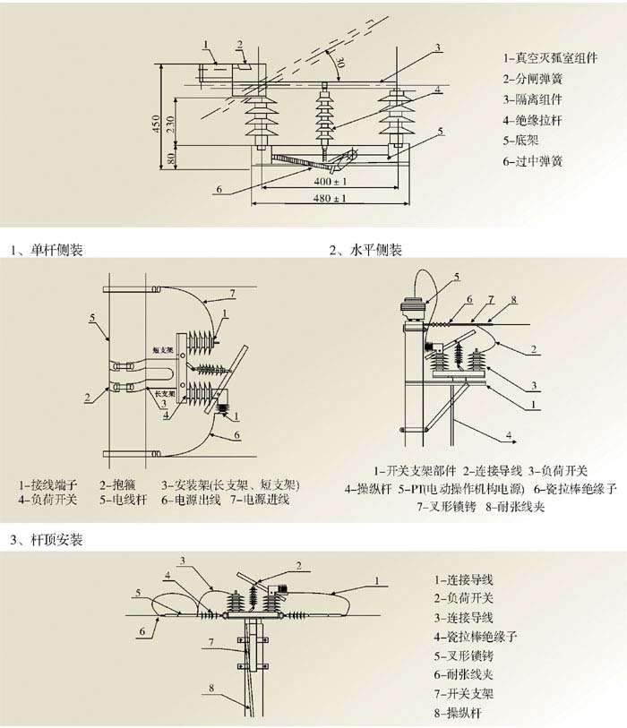 負荷開關是由隔離刀和真空滅弧室這兩大組件組成,隔離刀承擔了合閘和分閘時絕緣作用,真空滅弧室承擔熄滅電弧的作用。