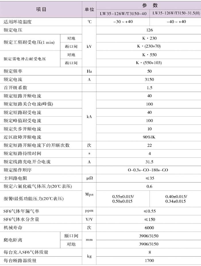 斷路器符合GB1984-2003《高壓交流斷路器》和IEC62271-100-2001《高壓交流斷路器》及QJ/RG.30.03.54-1999《LW36-126自能式斷路器技術(shù)條件》的要求。斷路器以SF6氣體為絕緣和滅弧介質(zhì),采用自能式滅弧原理,配用新型彈簧操動機構(gòu),具有開斷能力強,操作功小,可靠性高的特點。
