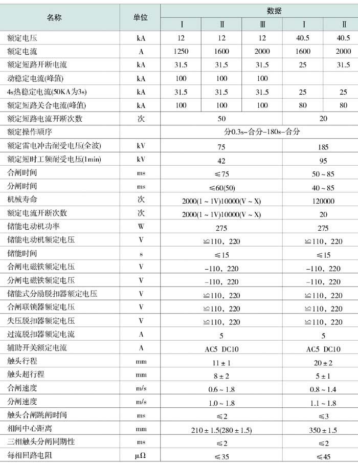 常用型號如下:ZN12-40.5/1600-25、ZN12-40.5/2000-31.5、ZN12-40.5/1250-25