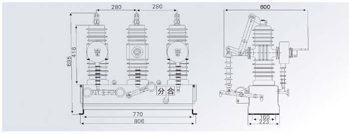 采用真空滅弧,固體絕緣,體積小,重量輕,開斷容量大,絕緣水平高;
