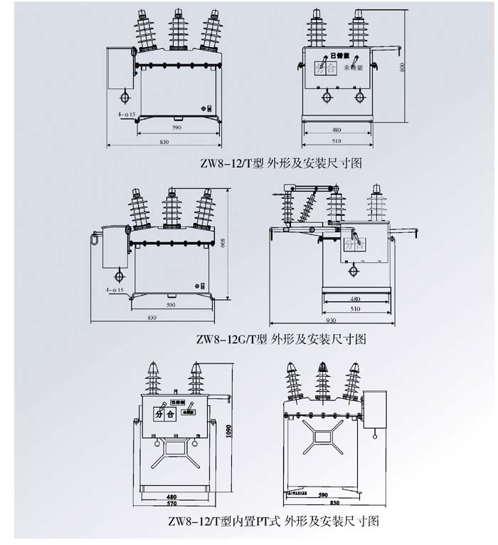 ZW8-12/T型戶外高壓真空斷路器配用彈簧操動機構,具有開斷關合負荷電流、過載電流及短路電流等基本功能,是ZW8-12系列的基本型。