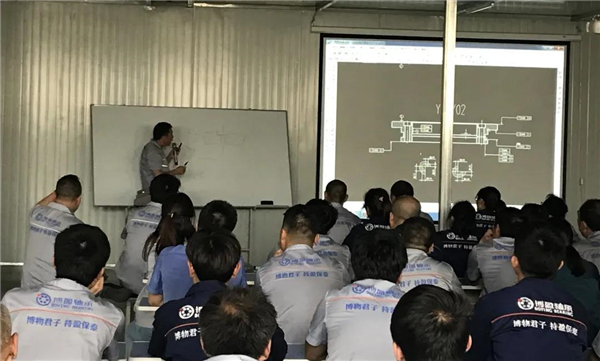 過程中博盈軸承魏紀偉總經理匯報了博盈軸承在研發中心建設、和中原工學院開展的校企聯合培訓、廠內員工技術培訓班等技能提升項目的發展進展。以及博盈軸承自2020年11月新廠建成以來,博盈軸承在宜陽縣產業集聚區帶動就業,原料及配套產品本地化采購、生產的情況。